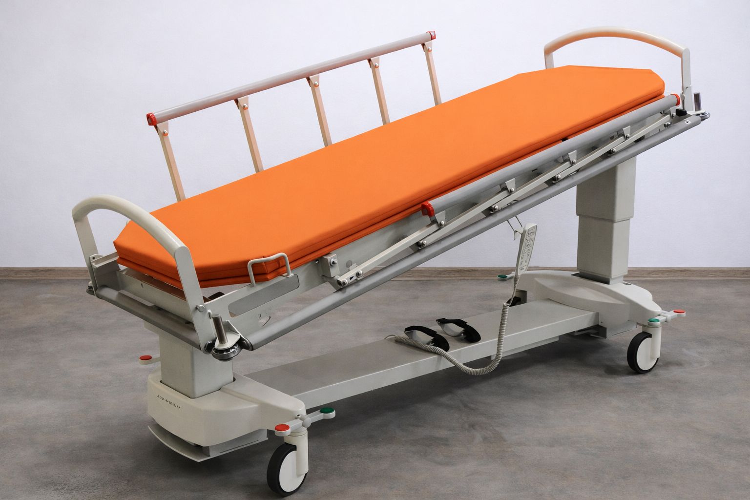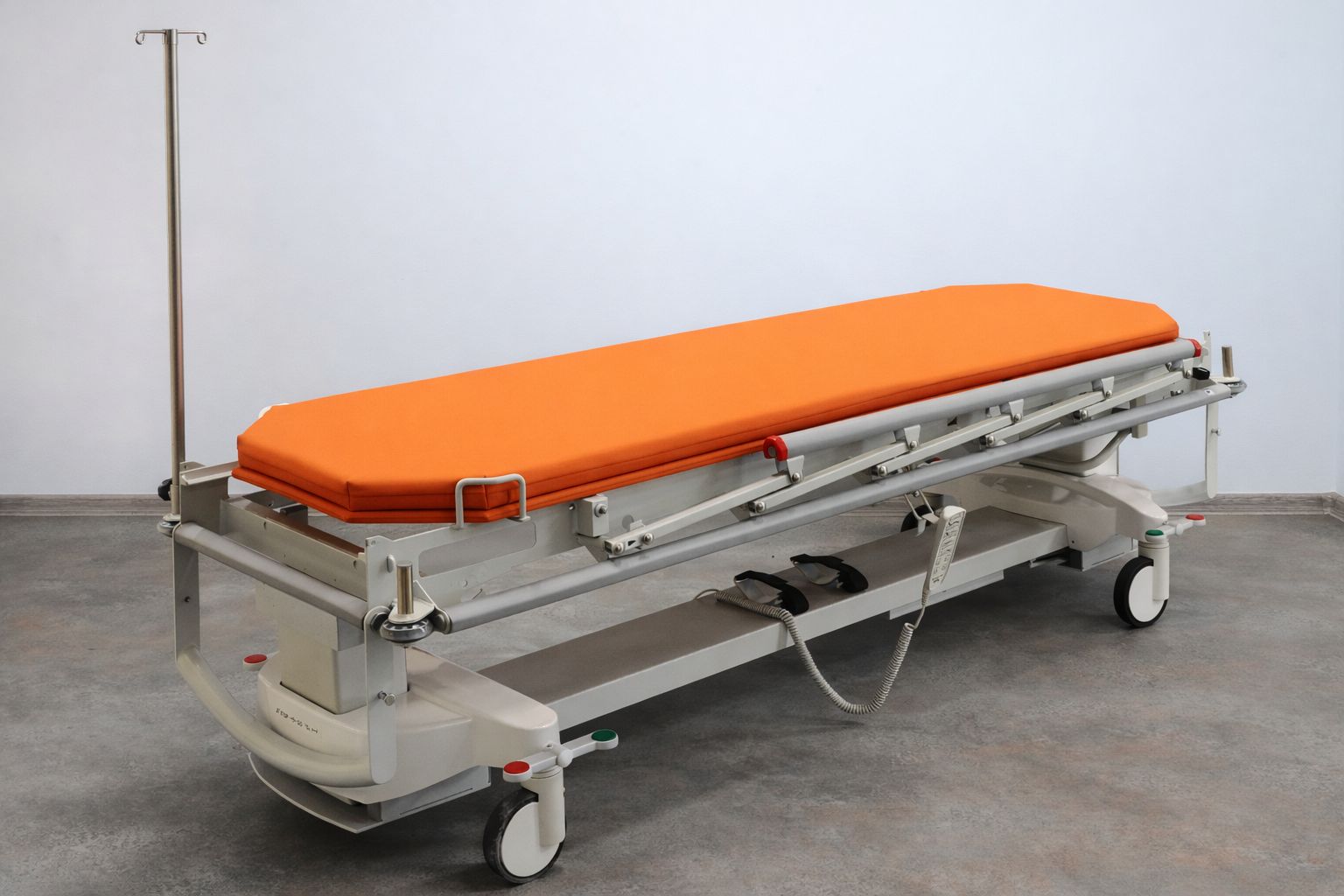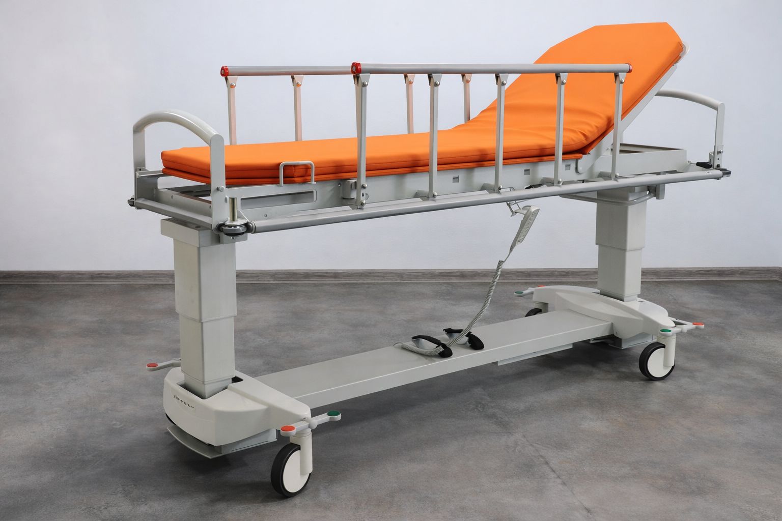 Transport, urgentní zákrok, rentgen – na všechno můžete využít tento stretcher. Kvalitní pojezdová kola Ø 150 mm s dvěma centrálními brzdami, vodicí kolečka pro rovný směr. Snímatelná matrace 630 × 1 950 mm, zádový segment nastavitelný manuálně plynovou pružinou 0° až +70°. Vnější rozměry (průjezdný profil) 750 × 2 050 mm.