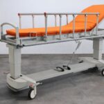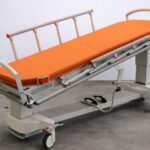 Výška nastavitelná hydraulicky 640 – 960 mm, náklon plochy nastavitelný hydraulicky ± 17°, ovládání nožními pedály z obou stran lehátka.